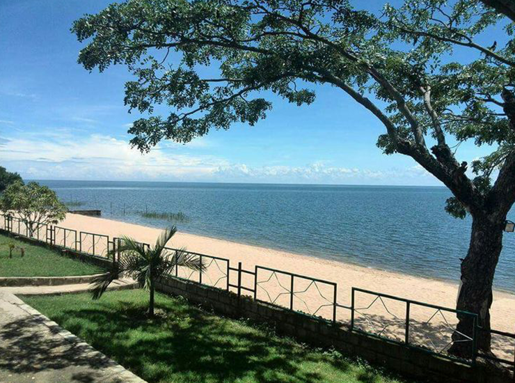 Relax on pristine white sands by Lake Bangweulu, perfect for swimming, boating, and sunset views.
